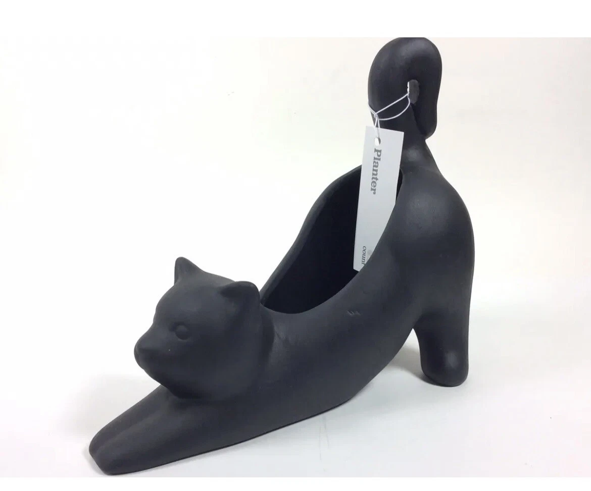 Black Cat Ceramic Planter Stretching Cat Planter Pot W Drainage Hole New Ebay